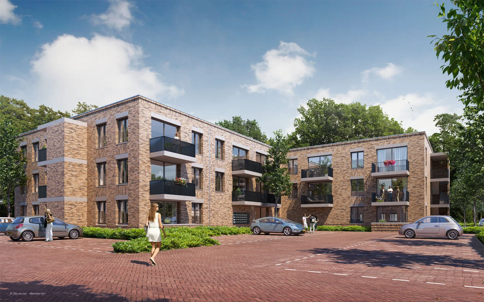 De verschillende gebouw-typologieën worden met architectuur familie van elkaar gemaakt: Door voor de verschillende types gebruik te maken van dezelfde architectonische elementen, ontstaat een gemeenschappelijke taal. Metselwerk, diepe, neggen,detaillering, gezoet prefab beton lateien en luifels en balkons en repeterende raamafmetingen zorgen voor harmonie binnen de compositie van verschillende korrelgroottes. Er is duidelijk gekozen voor Ingetogen kleurgebruik en vormgeving. Toepassing van natuurlijke materialen (metselwerk en keramische pannen) die mooi verouderen, zal er voor zorgen dat het plan opgenomen wordt in de groene omgeving. Het metselwerk heeft een bruin-grijze, warme teint. Aan de straat gevel van de woningen aan de Pierebaan wordt daar een donkerder teint aan toegevoegd, zodat de parcelering van de woningen wordt benadrukt. Alle woningen hebben houten voordeuren en prefab beton lateien (gezoet) boven de raamopeningen. Bij het appartementengebouw worden de balkons afgeschermd door stalen lamellen hekwerken. Overal wordt de zelfde donkere grijs-groene kleur toegepast voor de kozijnen.